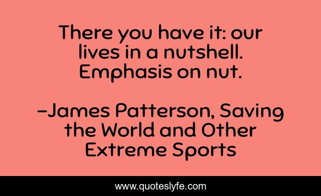 This page presents the quote "There you have it: our lives in a nutshell. Emphasis on nut.". Author of this quote is James Patterson, Saving the World and Other Extreme Sports. This quote is about funny, crazy, nuts, life, lol, comedy,.