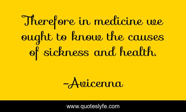 This page presents the quote "Therefore in medicine we ought to know the causes of sickness and health.". Author of this quote is Avicenna. This quote is about medicine, sickness,.
