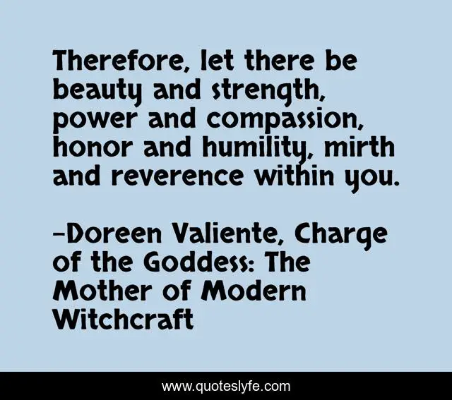 "Doreen Valiente, Charge of the Goddess: The Mother of Modern Witchcraft Quotes." Quoteslyfe.com, 2025. Sat. 06 Dec. 2025. <https://www.quoteslyfe.com/quote/Therefore-let-there-be-beauty-and-strength-163856>.