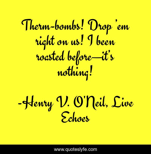 "Henry V. O'Neil, Live Echoes Quotes." Quoteslyfe.com, 2025. Mon. 08 Dec. 2025. <https://www.quoteslyfe.com/quote/Therm-bombs-Drop-em-right-on-us-157208>.