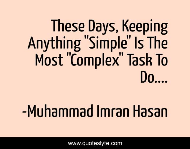"Muhammad Imran Hasan Quotes." Quoteslyfe.com, 2025. Fri. 05 Dec. 2025. <https://www.quoteslyfe.com/quote/These-Days-Keeping-Anything-Simple-Is-The-202425>.