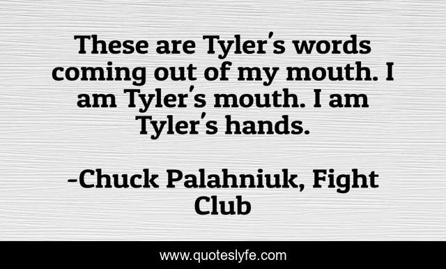 "Chuck Palahniuk, Fight Club Quotes." Quoteslyfe.com, 2025. Fri. 05 Dec. 2025. <https://www.quoteslyfe.com/quote/These-are-Tyler-s-words-coming-out-112639>.