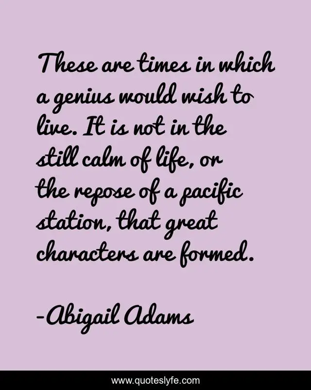 This page presents the quote "These are times in which a genius would wish to live. It is not in the still calm of life, or the repose of a pacific station, that great characters are formed.". Author of this quote is Abigail Adams. This quote is about genius, life, character,.