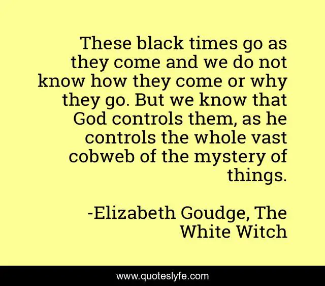 "Elizabeth Goudge, The White Witch Quotes." Quoteslyfe.com, 2025. Mon. 08 Dec. 2025. <https://www.quoteslyfe.com/quote/These-black-times-go-as-they-come-11194>.