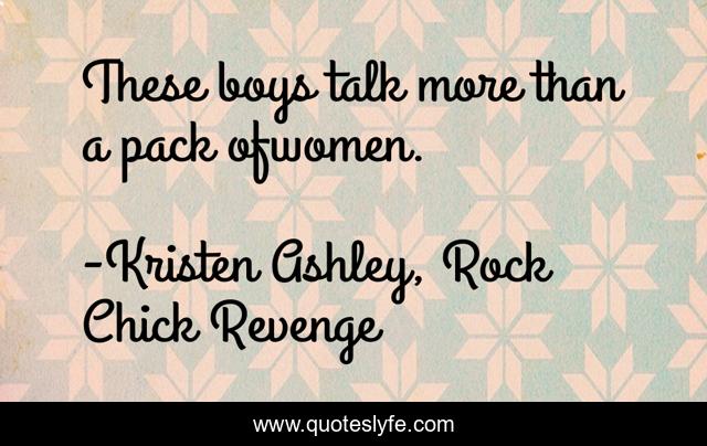 "Kristen Ashley, Rock Chick Revenge Quotes." Quoteslyfe.com, 2025. Sat. 06 Dec. 2025. <https://www.quoteslyfe.com/quote/These-boys-talk-more-than-a-pack-257321>.