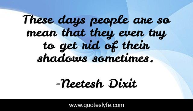 This page presents the quote "These days people are so mean that they even try to get rid of their shadows sometimes.". Author of this quote is Neetesh Dixit. This quote is about disappoint, disappointed, disappointment, trustworthiness,.