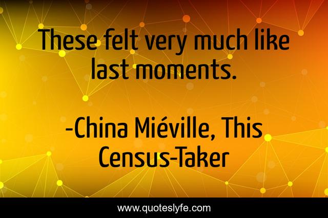 "China Miéville, This Census-Taker Quotes." Quoteslyfe.com, 2025. Tue. 09 Dec. 2025. <https://www.quoteslyfe.com/quote/These-felt-very-much-like-last-moments-161929>.