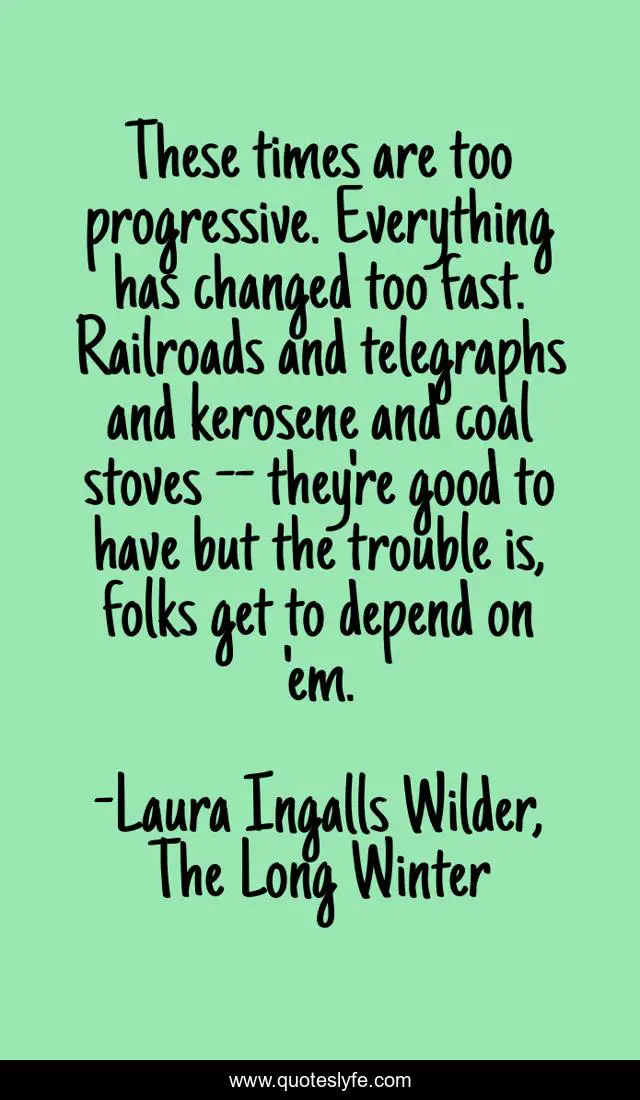 "Laura Ingalls Wilder, The Long Winter Quotes." Quoteslyfe.com, 2025. Sat. 06 Dec. 2025. <https://www.quoteslyfe.com/quote/These-times-are-too-progressive-Everything-has-191643>.