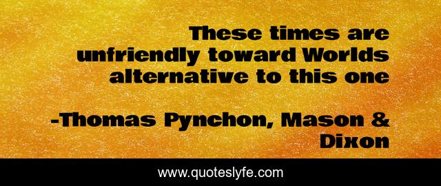 "Thomas Pynchon, Mason & Dixon Quotes." Quoteslyfe.com, 2025. Fri. 05 Dec. 2025. <https://www.quoteslyfe.com/quote/These-times-are-unfriendly-toward-Worlds-alternative-258188>.