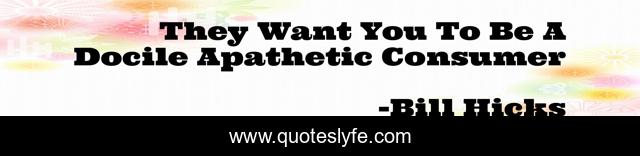This page presents the quote "They Want You To Be A Docile Apathetic Consumer". Author of this quote is Bill Hicks. This quote is about thinking, society, media-journalism, humor,.