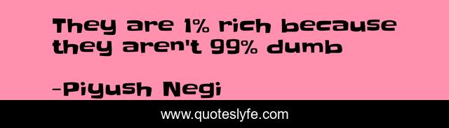This page presents the quote "They are 1% rich because they aren't 99% dumb". Author of this quote is Piyush Negi. This quote is about success, powerful, smart-people, onepercent, rich, smart,.