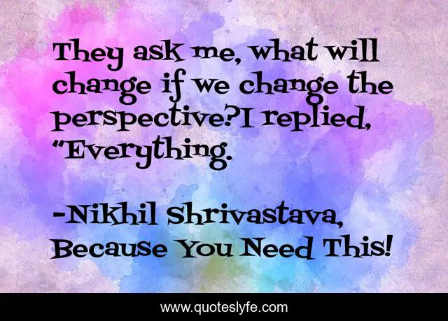 This page presents the quote "They ask me, what will change if we change the perspective?I replied, “Everything.". Author of this quote is Nikhil Shrivastava, Because You Need This!. This quote is about life-changing, perspective, observation,.