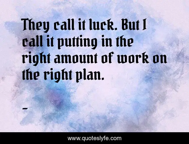 This page presents the quote "They call it luck. But I call it putting in the right amount of work on the right plan.". Author of this quote is . This quote is about being-lucky-in-life, becoming-lucky-in-life, having-the-right-plan-of-action, edmond-mbiaka, working-on-the-right-plan, what-is-luck, putting-in-work,.