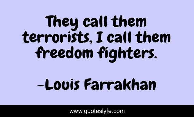 This page presents the quote "They call them terrorists, I call them freedom fighters.". Author of this quote is Louis Farrakhan. This quote is about fighters, call, terrorists,.