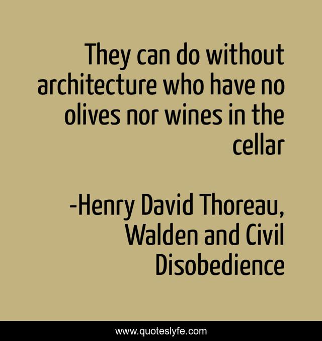 This page presents the quote "They can do without architecture who have no olives nor wines in the cellar". Author of this quote is Henry David Thoreau, Walden and Civil Disobedience. This quote is about society, poverty, architecture, class,.