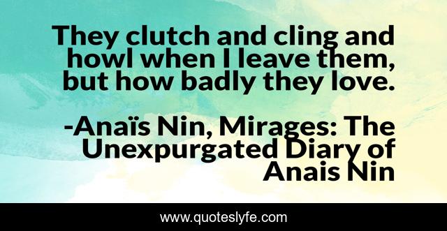 This page presents the quote "They clutch and cling and howl when I leave them, but how badly they love.". Author of this quote is Anaïs Nin, Mirages: The Unexpurgated Diary of Anais Nin. This quote is about love, passion, affection,.