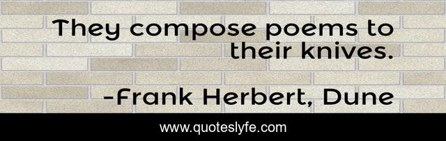 "Frank Herbert, Dune Quotes." Quoteslyfe.com, 2025. Sat. 06 Dec. 2025. <https://www.quoteslyfe.com/quote/They-compose-poems-to-their-knives-157240>.