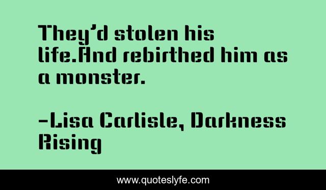 "Lisa Carlisle, Darkness Rising Quotes." Quoteslyfe.com, 2025. Sun. 07 Dec. 2025. <https://www.quoteslyfe.com/quote/They-d-stolen-his-life-And-rebirthed-131805>.