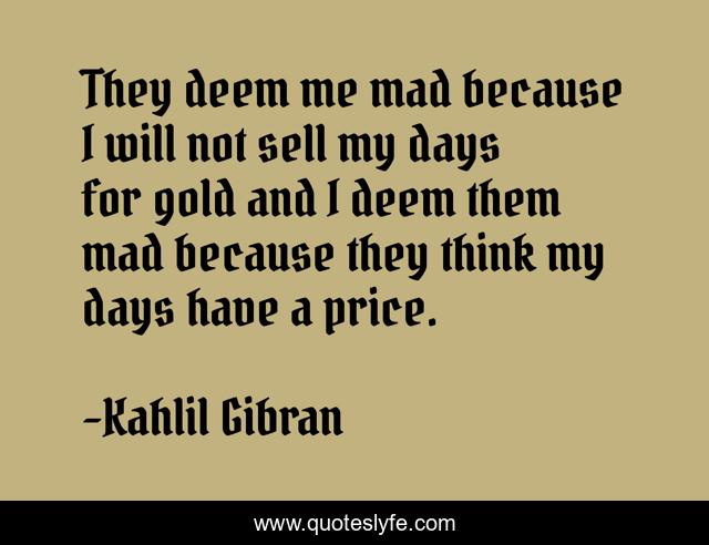 They deem me mad because I will not sell my days for gold and I deem them mad because they think my days have a price.