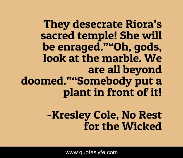 "Kresley Cole, No Rest for the Wicked Quotes." Quoteslyfe.com, 2025. Sat. 06 Dec. 2025. <https://www.quoteslyfe.com/quote/They-desecrate-Riora-s-sacred-temple-She-55373>.