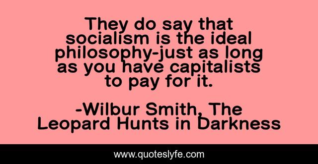 This page presents the quote "They do say that socialism is the ideal philosophy-just as long as you have capitalists to pay for it.". Author of this quote is Wilbur Smith, The Leopard Hunts in Darkness. This quote is about socialism, government, capitalism, economy, hypocrisy,.