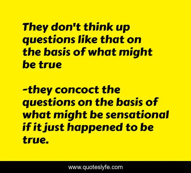 "they concoct the questions on the basis of what might be sensational if it just happened to be true. Quotes." Quoteslyfe.com, 2025. Fri. 05 Dec. 2025. <https://www.quoteslyfe.com/quote/They-don-t-think-up-questions-like-247625>.
