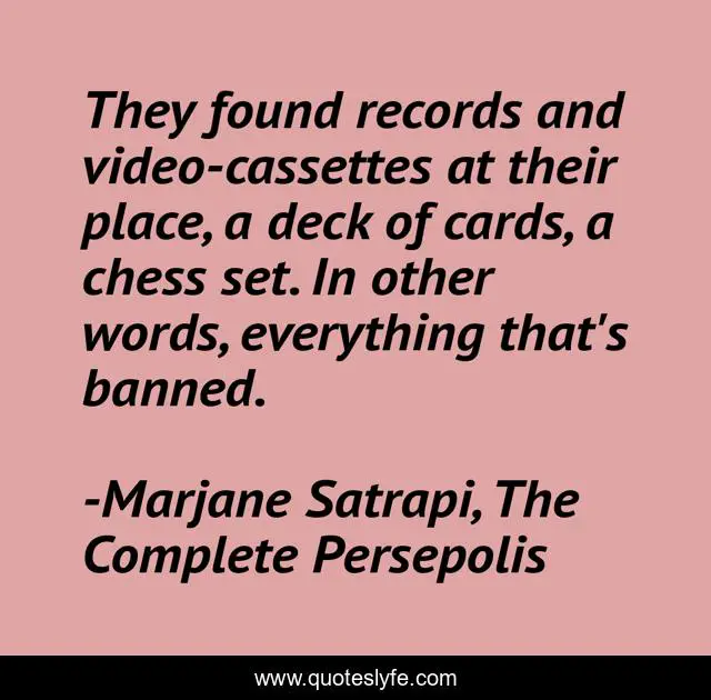 "Marjane Satrapi, The Complete Persepolis Quotes." Quoteslyfe.com, 2025. Fri. 05 Dec. 2025. <https://www.quoteslyfe.com/quote/They-found-records-and-video-cassettes-at-46002>.