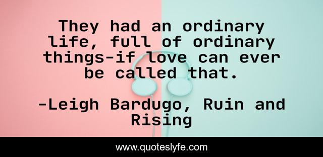 This page presents the quote "They had an ordinary life, full of ordinary things-if love can ever be called that.". Author of this quote is Leigh Bardugo, Ruin and Rising. This quote is about life, love, affection,.