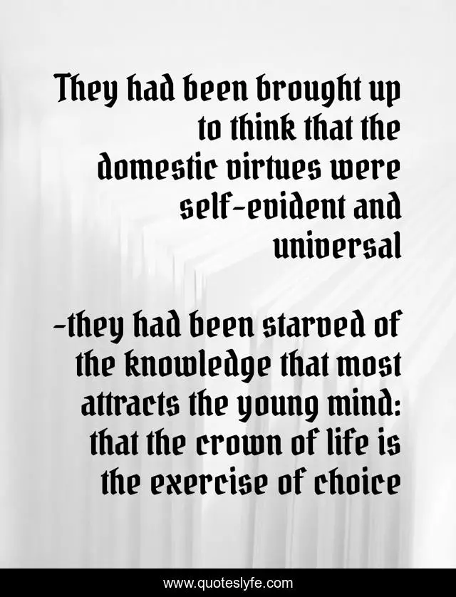 "they had been starved of the knowledge that most attracts the young mind: that the crown of life is the exercise of choice Quotes." Quoteslyfe.com, 2025. Fri. 05 Dec. 2025. <https://www.quoteslyfe.com/quote/They-had-been-brought-up-to-think-184570>.