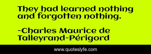 "Charles Maurice de Talleyrand-Périgord Quotes." Quoteslyfe.com, 2025. Fri. 05 Dec. 2025. <https://www.quoteslyfe.com/quote/They-had-learned-nothing-and-forgotten-nothing-117429>.