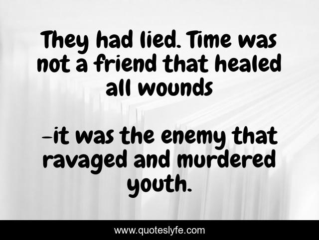 This page presents the quote "They had lied. Time was not a friend that healed all wounds". Author of this quote is it was the enemy that ravaged and murdered youth.. This quote is about a stranger in the mirror, sidney sheldon,.
