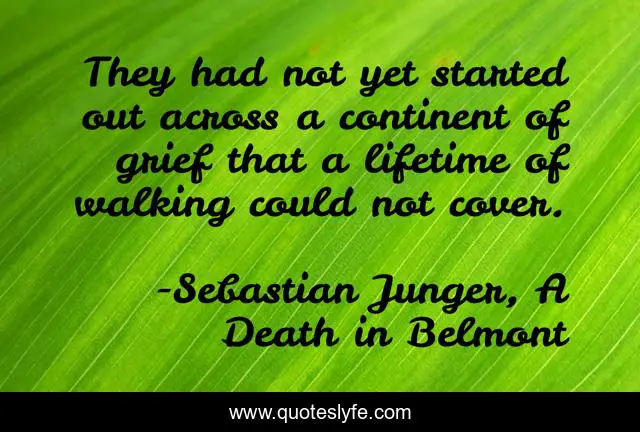 This page presents the quote "They had not yet started out across a continent of grief that a lifetime of walking could not cover.". Author of this quote is Sebastian Junger, A Death in Belmont. .