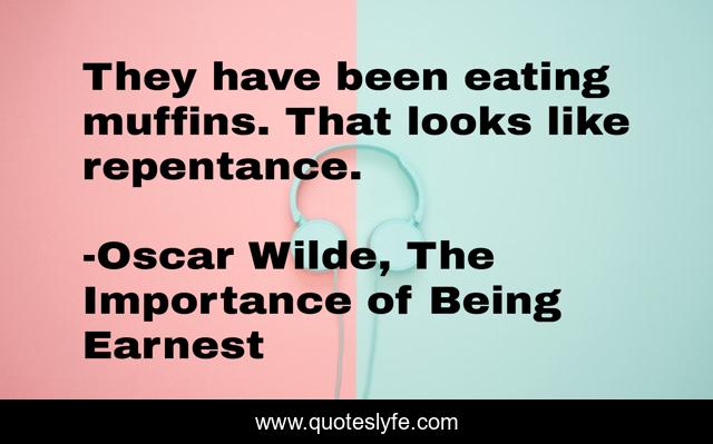 This page presents the quote "They have been eating muffins. That looks like repentance.". Author of this quote is Oscar Wilde, The Importance of Being Earnest. This quote is about humorous, satire,.