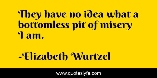 This page presents the quote "They have no idea what a bottomless pit of misery I am.". Author of this quote is Elizabeth Wurtzel. .