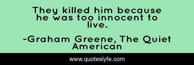 This page presents the quote "They killed him because he was too innocent to live.". Author of this quote is Graham Greene, The Quiet American. .