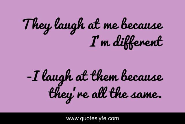 This page presents the quote "They laugh at me because I'm different". Author of this quote is I laugh at them because they're all the same.. .