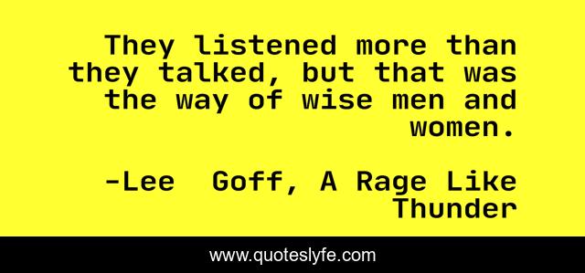 "Lee Goff, A Rage Like Thunder Quotes." Quoteslyfe.com, 2025. Fri. 05 Dec. 2025. <https://www.quoteslyfe.com/quote/They-listened-more-than-they-talked-but-245296>.