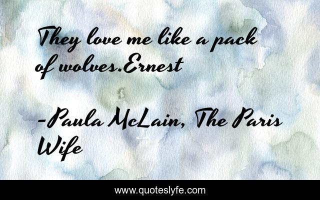 This page presents the quote "They love me like a pack of wolves.Ernest". Author of this quote is Paula McLain, The Paris Wife. This quote is about paris, wolves, ernest-hemingway,.