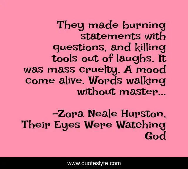 "Zora Neale Hurston, Their Eyes Were Watching God Quotes." Quoteslyfe.com, 2025. Fri. 05 Dec. 2025. <https://www.quoteslyfe.com/quote/They-made-burning-statements-with-questions-and-281240>.