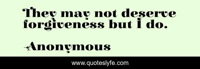 This page presents the quote "They may not deserve forgiveness but I do.". Author of this quote is Anonymous. .