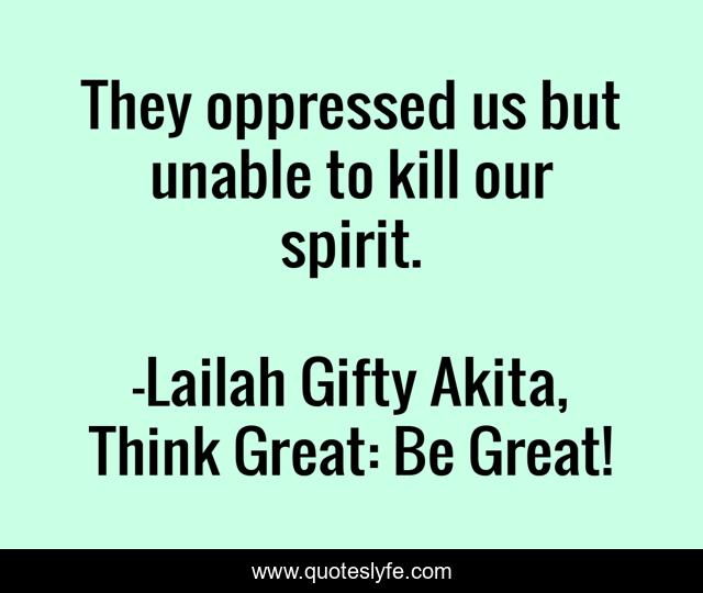 "Lailah Gifty Akita, Think Great: Be Great! Quotes." Quoteslyfe.com, 2025. Fri. 05 Dec. 2025. <https://www.quoteslyfe.com/quote/They-oppressed-us-but-unable-to-kill-84296>.