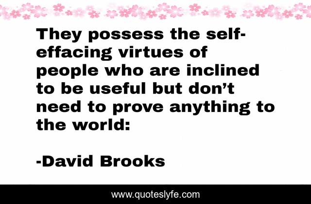 This page presents the quote "They possess the self- effacing virtues of people who are inclined to be useful but don’t need to prove anything to the world:". Author of this quote is David Brooks. This quote is about servant-leadership, humility,.