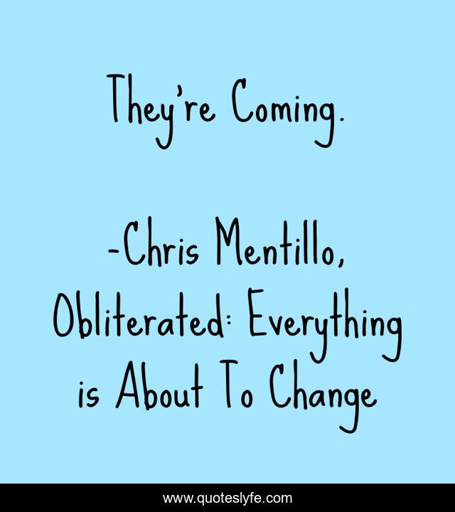 "Chris Mentillo, Obliterated: Everything is About To Change Quotes." Quoteslyfe.com, 2025. Tue. 09 Dec. 2025. <https://www.quoteslyfe.com/quote/They-re-Coming-211700>.