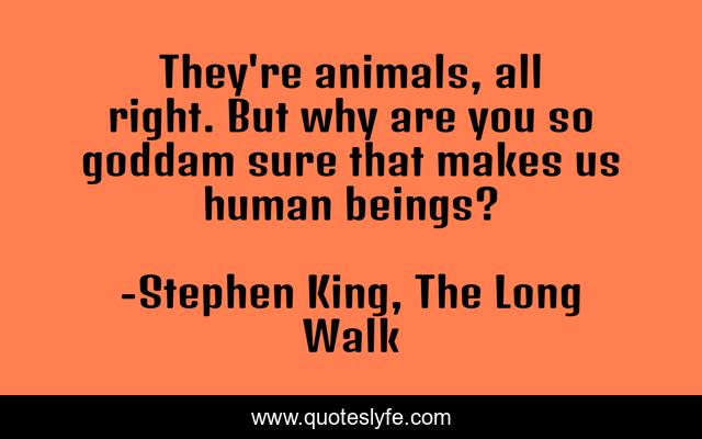"Stephen King, The Long Walk Quotes." Quoteslyfe.com, 2025. Sat. 06 Dec. 2025. <https://www.quoteslyfe.com/quote/They-re-animals-all-right-But-why-3545>.