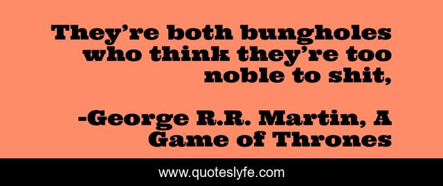 This page presents the quote "They’re both bungholes who think they’re too noble to shit, ". Author of this quote is George R.R. Martin, A Game of Thrones. .