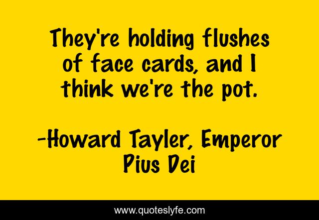 "Howard Tayler, Emperor Pius Dei Quotes." Quoteslyfe.com, 2025. Mon. 08 Dec. 2025. <https://www.quoteslyfe.com/quote/They-re-holding-flushes-of-face-cards-243578>.