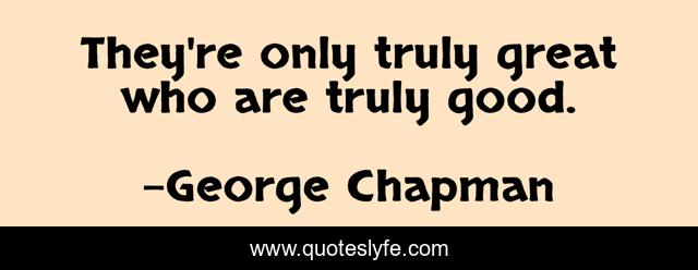 This page presents the quote "They're only truly great who are truly good.". Author of this quote is George Chapman. This quote is about great, only, truly,.