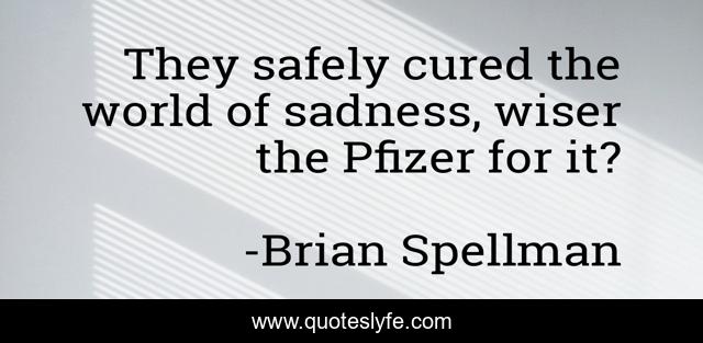 This page presents the quote "They safely cured the world of sadness, wiser the Pfizer for it?". Author of this quote is Brian Spellman. This quote is about psychiatry, neurological-problems, sadness, psychiatrists,.
