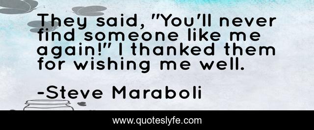 This page presents the quote "They said, "You'll never find someone like me again!" I thanked them for wishing me well.". Author of this quote is Steve Maraboli. This quote is about relationships, breakup,.