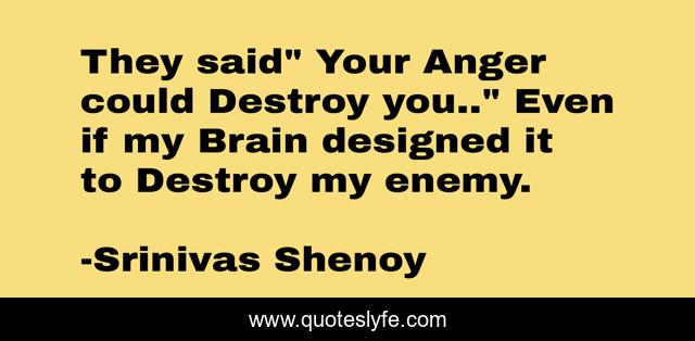 This page presents the quote "They said" Your Anger could Destroy you.." Even if my Brain designed it to Destroy my enemy.". Author of this quote is Srinivas Shenoy. This quote is about anger, revenge,.